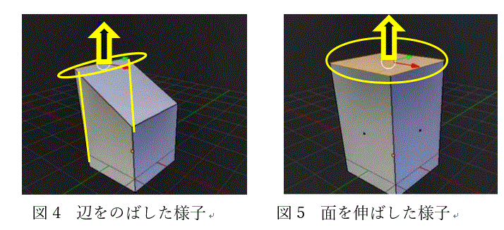 さらに選択する箇所を辺や面に変えると図4、図5に示すように形が変化します。