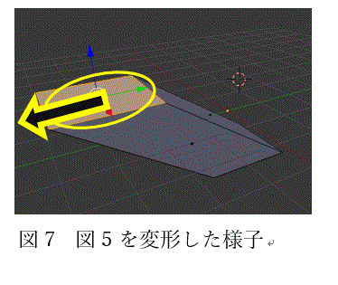 また、頂点、辺、及び面はx,y,zの3方向において移動したり伸ばしたりするだけでなく、図9のように回転させることもできます。図9は直方体の上の面だけを回転させた状態です。