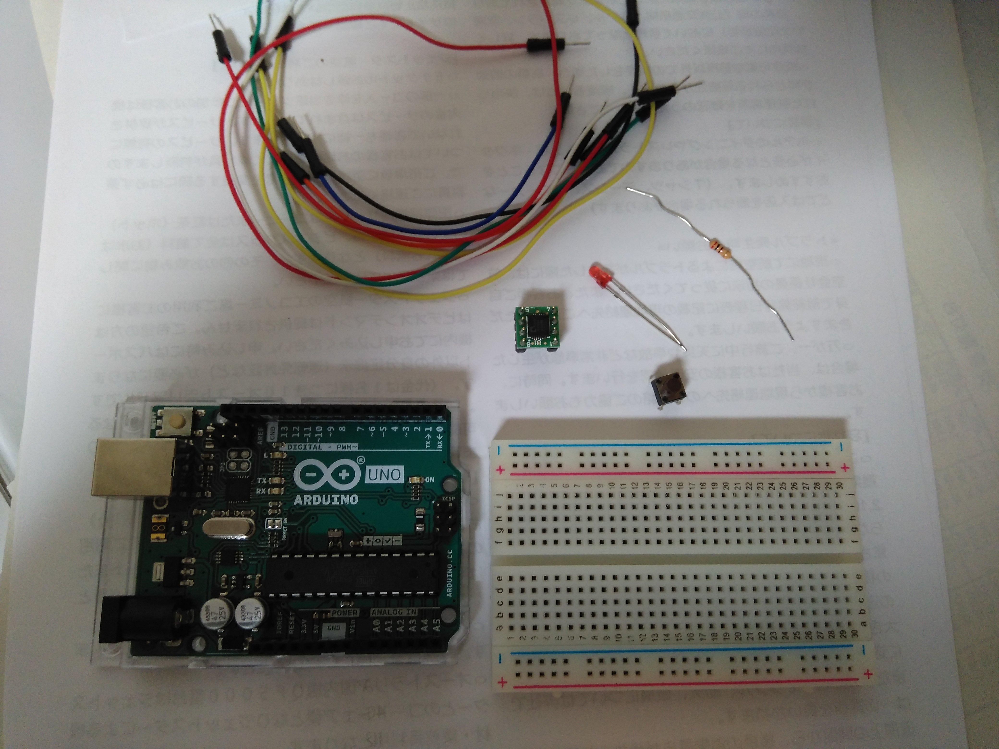今回は以下の部品を使用し、歩数計製作を行いました。