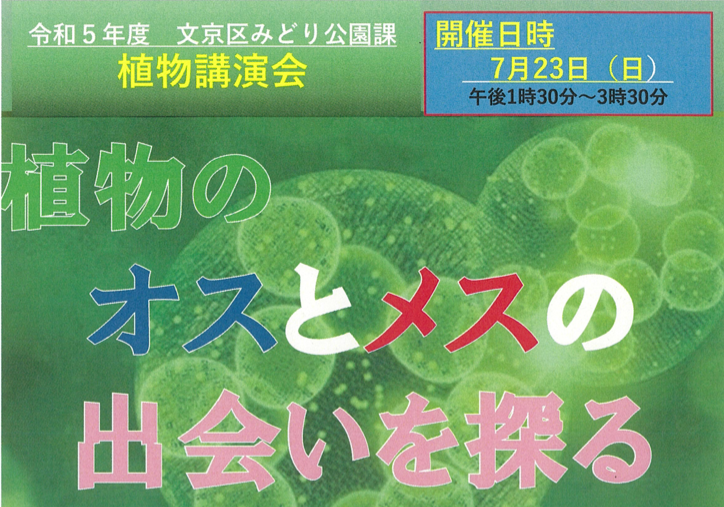 文京区みどり公園課主催の植物講演会にて、「植物のオスとメスの出会いを探る」という演題で講演してきました。