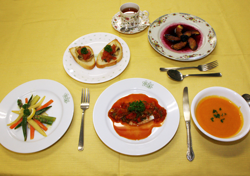 | ●fish:平目のバジル蒸し ~彩り野菜のトマトソース~ |