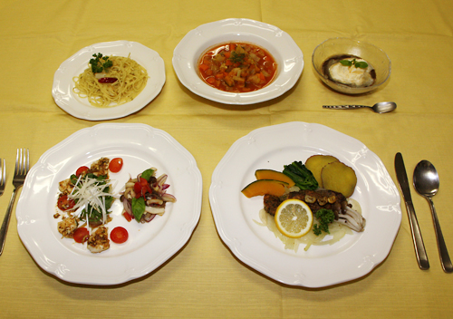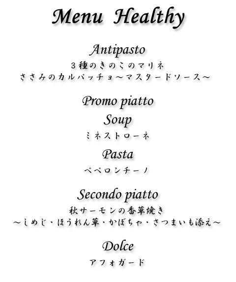 | ●Secondo piatto:秋サーモンの香草焼き 〜しめじ・ほうれん草・かぼちゃ・さつまいも添え〜 |