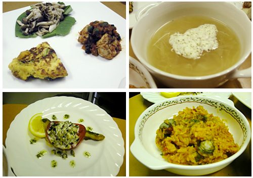 antipasto:キノコのバルサミコマリネ・鶏胸肉の煮込みナポリ風・イタリアンオムレツ